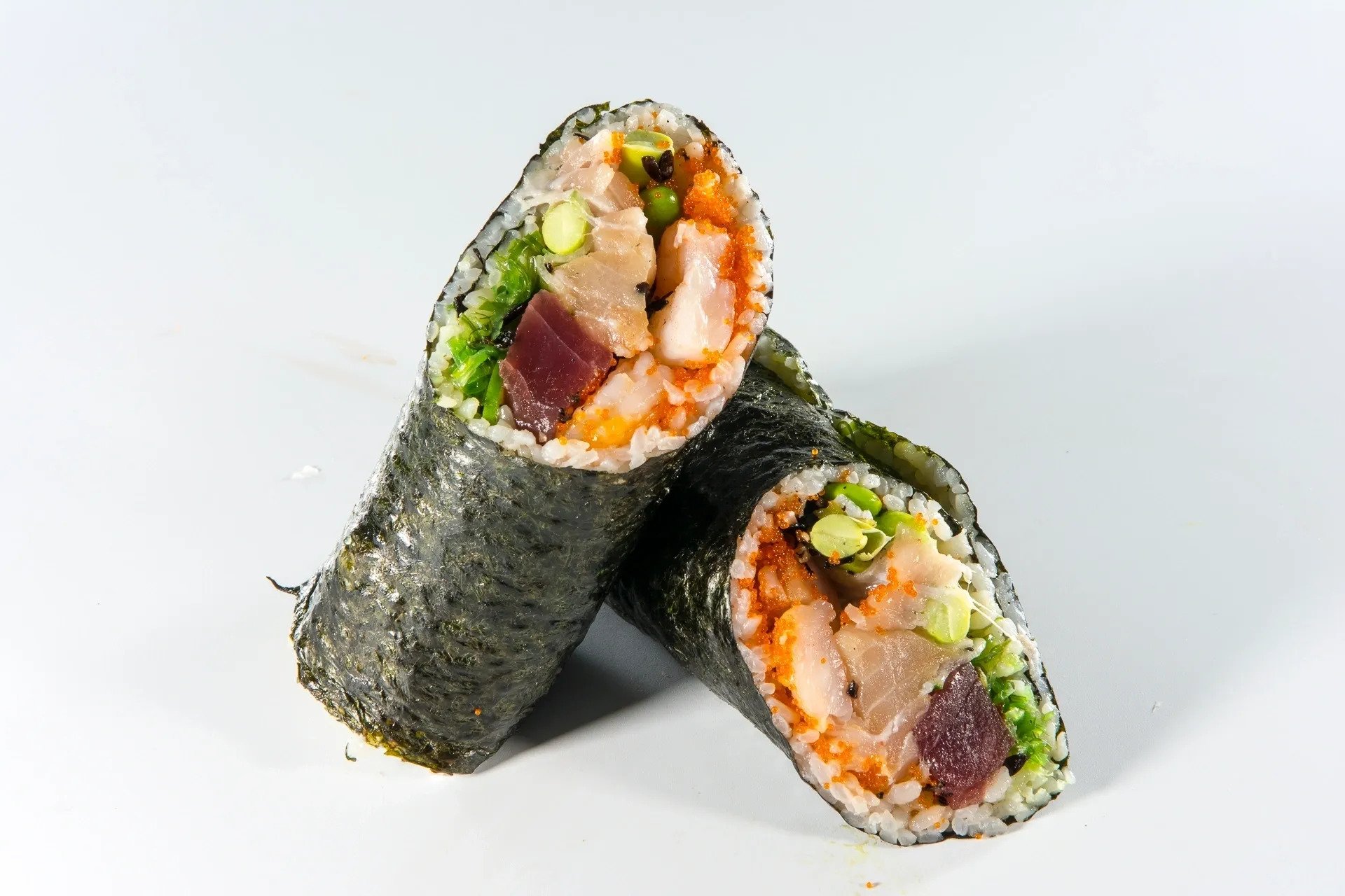 Poke Your Way The Ultimate Poke Burrito What Do You Get When You Roll Fresh Tuna Salmon Diced Mango Creamy Avocado Crunchy Cucumber Edamame Garlic Crisps And Pokeworks Classic